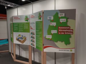 Unser Stand steht in einem gemeinsamen Bereich mit den Großen Kreisstädten, die die Ergebnisse ihrer kommunalen Wärmeplanung und den Ausbau der jeweiligen Fernwärme präsentieren.